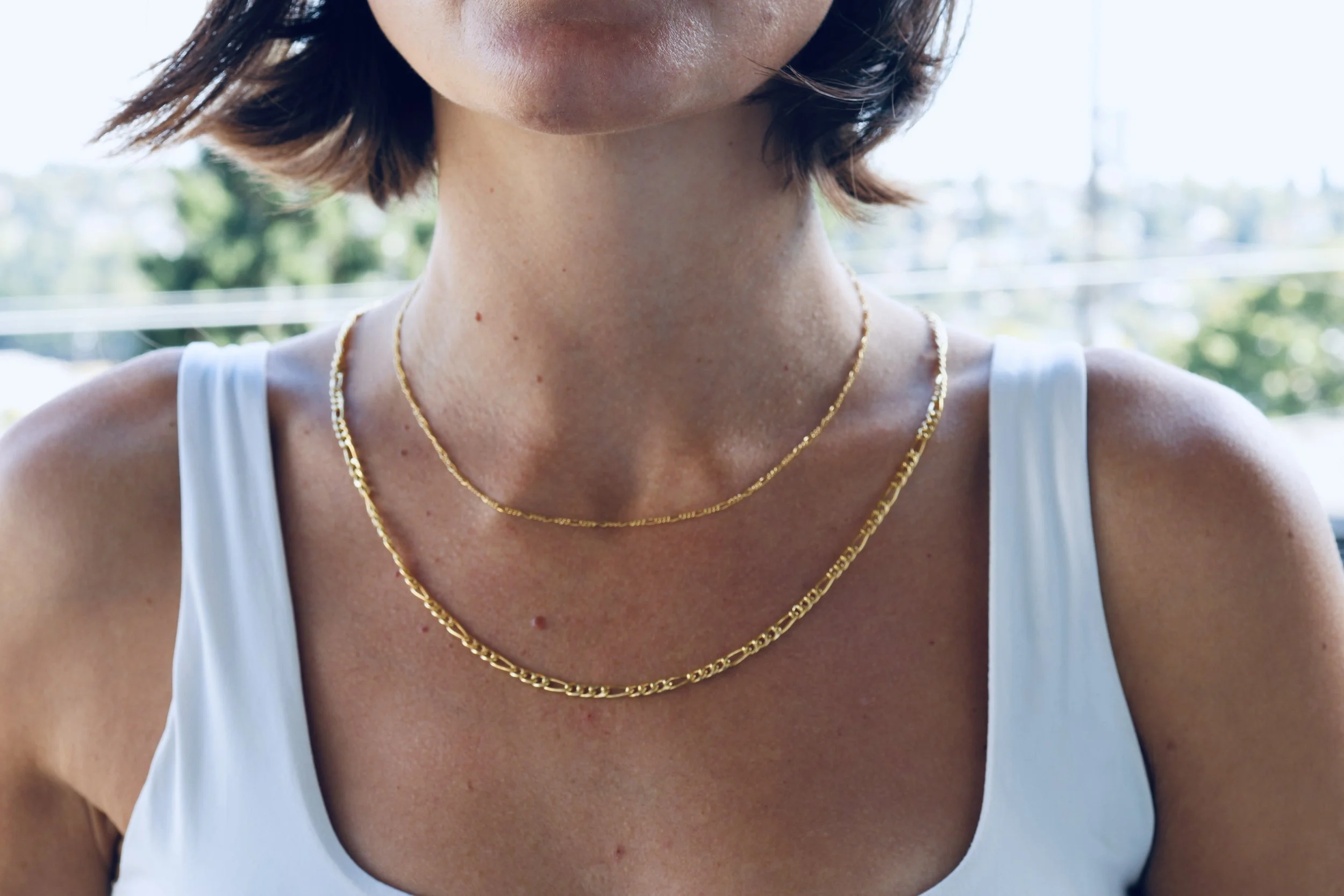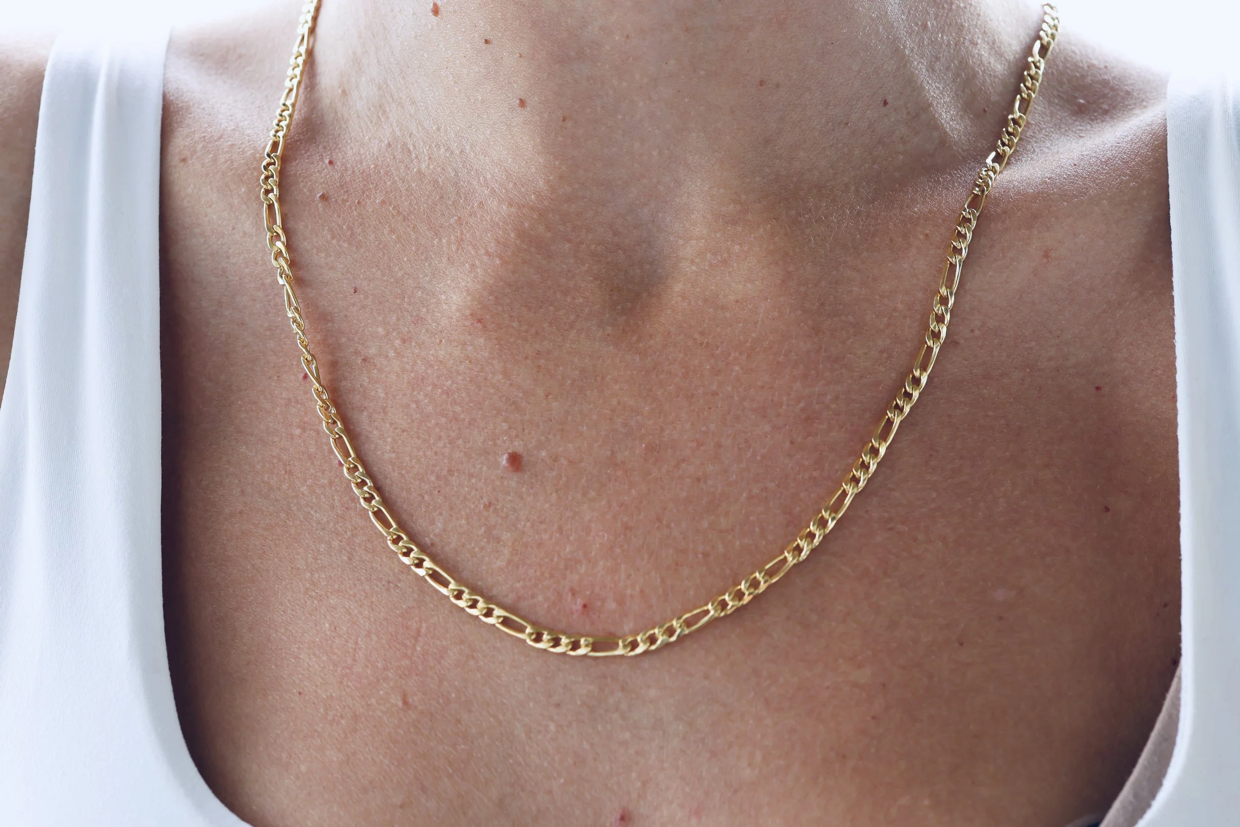 14K gold fill 3.8mm Figaro chain necklace. A classic everday wear, with alternating short and long links.